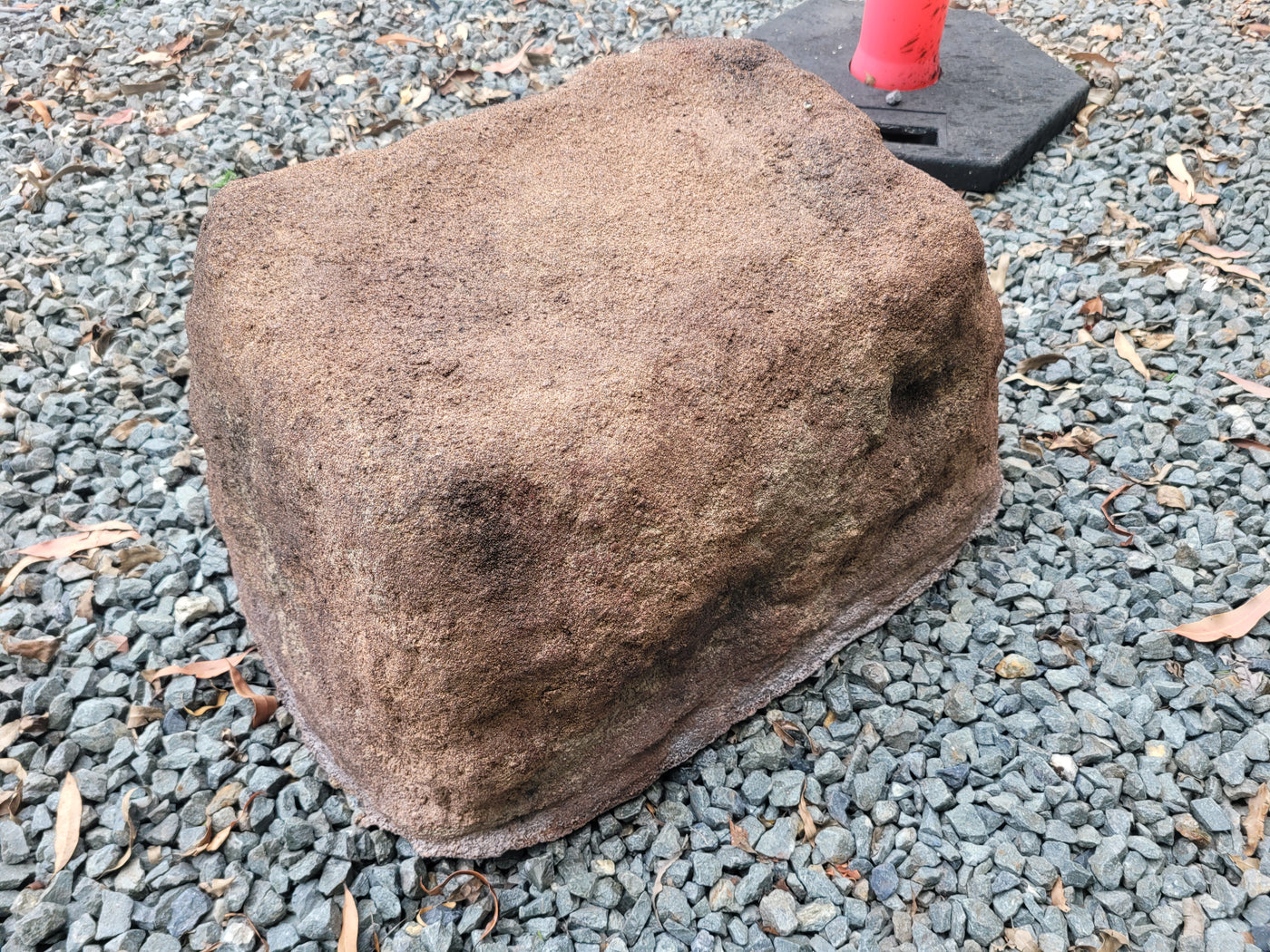 Proudly an original Australian product idea operating since 2009. Extra-Large Size Weight (approx. 30 kg) Memorial Rock/Stone/Urn with a sealable internal cavity for the safe-keeping of a loved one's ashes. Holds one or two or three standard Australian sized ash containers (as demonstrated in photos), plus memorabilia. Size Approx. 600mm x 440...