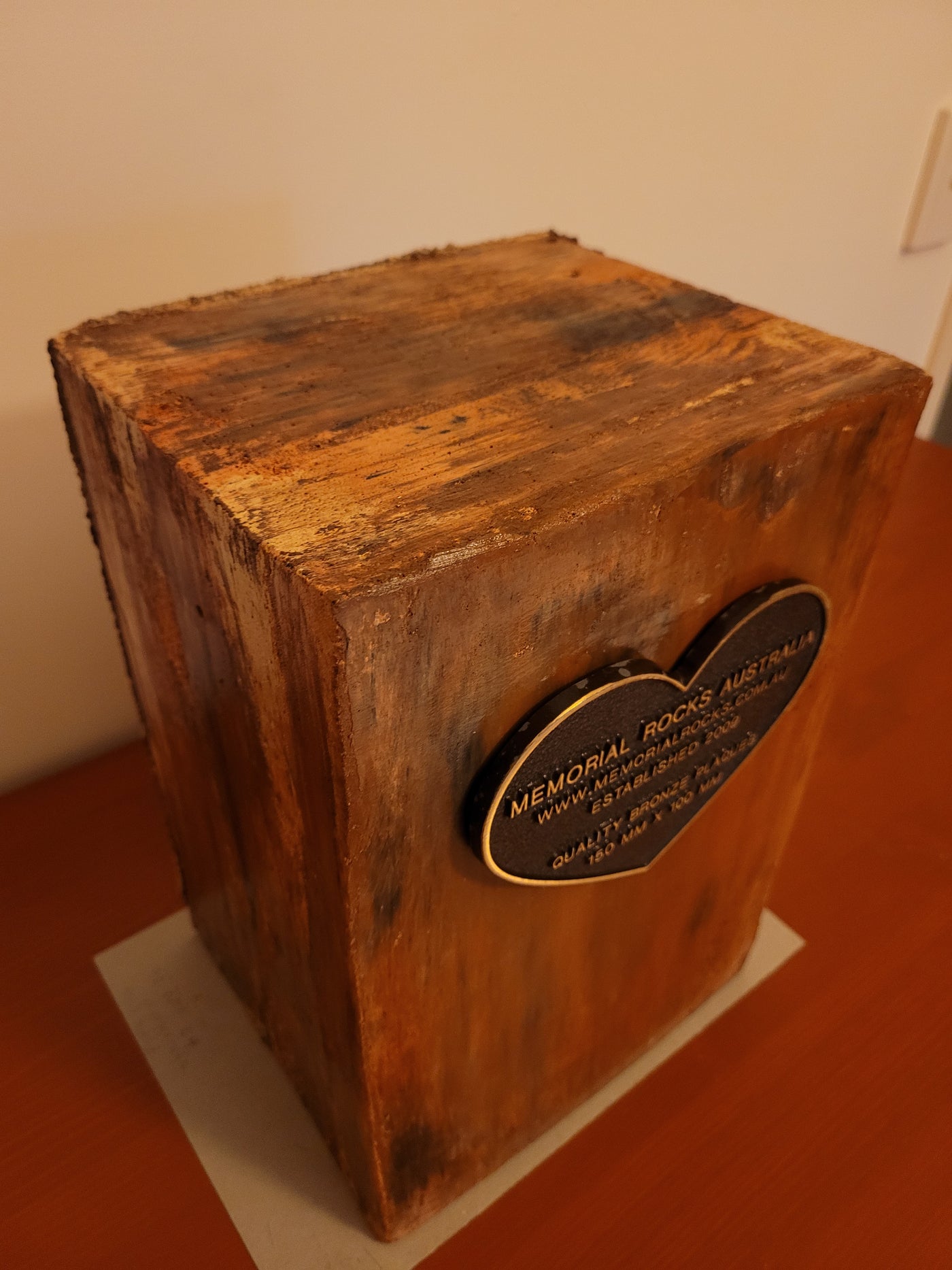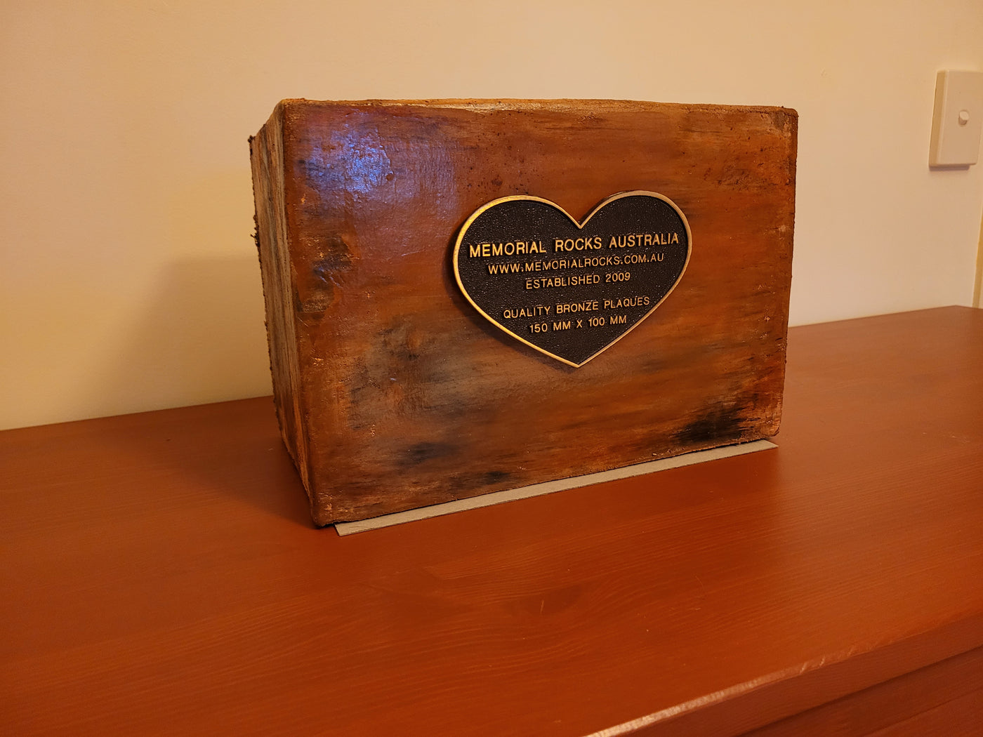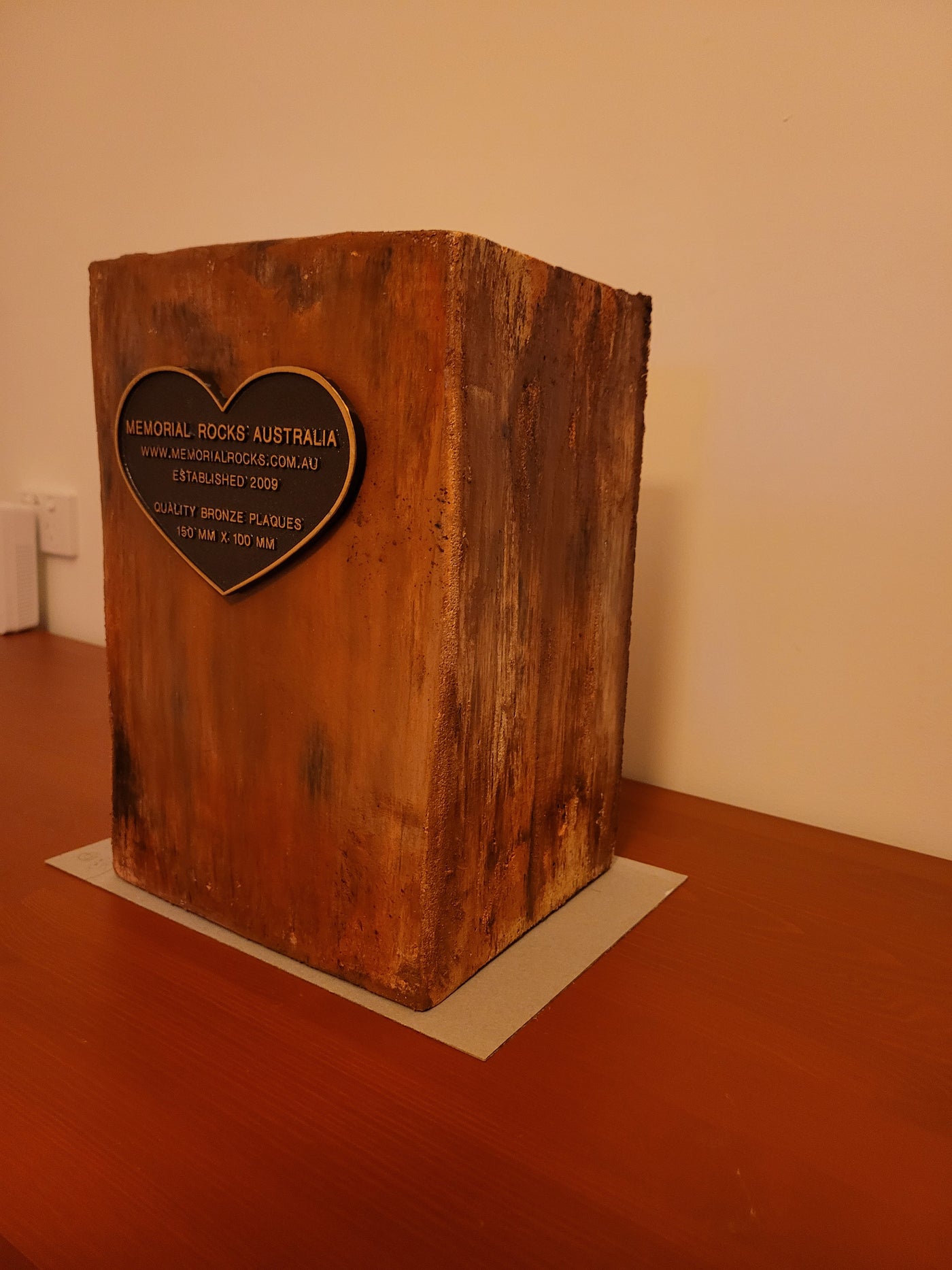 {"id":7798908551357,"title":"Indoor \/ Outdoor Memorial Urn for ashes no. 1758","handle":"indoor-outdoor-memorial-urn-for-ashes-template","description":"\u003cp\u003eGFRC ( Glass Fibre Reinforced Concrete) ( silica free) Indoor\/Outdoor Memorial Urns are a loving practical alternative for the safe keeping of a loved one's ashes.\u003c\/p\u003e\n\u003cp\u003eThe individually unique colouring is not painted on but rather is impregnated as a part of the concrete. A high strength Outdoor quality sealant is then applied. \u003c\/p\u003e\n\u003cp\u003eUnlike the expensive wooden Urns often sold these extremely strong Concrete Urns are very fire resistant.\u003c\/p\u003e\n\u003cp\u003eMultiple Indoor\/ Outdoor Urns can also be stacked forming a Family Memorial Wall.\u003c\/p\u003e\n\u003cp\u003eThis Memorial Urn can accommodate a recommended 150mm x 100mm x4.5mm industry standard bronze plaque. Rectangular or Heart Shaped. \u003c\/p\u003e\n\u003cp\u003ePLAQUE SOLD SEPARATELY \u003c\/p\u003e\n\u003cp\u003eProudly an Australian made, original product. Operating since 2009.\u003c\/p\u003e\n\u003cp\u003eRegular size.\u003c\/p\u003e\n\u003cp\u003eLightweight (approx. 15 kg) Memorial indoor\/outdoor Urn with a sealable internal cavity for the safe-keeping of a loved one's ashes. Holds one standard Australian sized ash container. (250mm x 150mm x 120mm)\u003c\/p\u003e\n\u003cp\u003eA concrete backing plate and adhesive are supplied.\u003c\/p\u003e\n\u003cp\u003eSize External : 320mm x 220mm x 180mm. Internal : 270mm x 160mm x 140mm \u003c\/p\u003e\n\u003cp\u003eA high quality bronze plaque of your choice can also be purchased and can affixed prior to shipping if you wish. A 150mm x 100mm x 4.5 mm Plaque Rectangular or Heart Shaped) is the correct size plaque for the regular sized Indoor \/ Outdoor Memorial Urn.\u003c\/p\u003e\n\u003cp\u003e GST and Free Australia wide delivery is included .\u003c\/p\u003e\n\u003cp\u003e\u003cspan\u003eThe blue plastic cremation urn is photographed for display purposes and to reassure customers that the standard sized Australian cremation urn will fit comfortably.\u003c\/span\u003e\u003c\/p\u003e\n\u003cp\u003ePlease call 0413770272 to arrange to visit our Gold Coast display if you wish to view our full range personally.\u003c\/p\u003e\n\u003cp\u003eIf you have difficulties with local transport, a sample display may be able to come to you.\u003c\/p\u003e\n\u003cp\u003eWe are also able to receive and inter a loved one's ashes if you wish. \u003c\/p\u003e\n\u003cp\u003ePlease contact us any time if You have any questions. \u003c\/p\u003e\n\u003cp\u003eCovit 19 protocols are in place.\u003c\/p\u003e\n\u003cp\u003eWe hope our Indoor \/ Outdoor Memorial Urn will bring some comfort.\u003c\/p\u003e\n\u003cp\u003eAll the Best, Bud and Shinta Manthey. MRA \u003c\/p\u003e\n\u003cp\u003eNOTE: Payment of order can be made easily and securely with a Credit Card or Paypal. You do not need to join Paypal. For an alternative payment arrangement, please call us.\u003c\/p\u003e\n\u003cp\u003eTo buy, simply click \"Add to Cart\".\u003c\/p\u003e\n\u003cp\u003eTo see order, click \"View Cart\", then to pay click \"Check out\".\u003c\/p\u003e\n\u003cp\u003ePayment can be made in 4 installments by using the \" Afterpay \" facility. \u003c\/p\u003e\n\u003cp\u003eFor assistance please call Bud on 0413 770 272.\u003c\/p\u003e\n\u003cdiv\u003e\u003c\/div\u003e","published_at":"2024-06-07T16:37:10+10:00","created_at":"2024-06-07T15:33:32+10:00","vendor":"MRA","type":"Memorial Rock","tags":["ash interment","box urn","casket","concrete box urn","concrete capsule","concrete cremation urn","concrete urn","concrete vault","cremation urn for buffet","cremation urn for home","cremation urn for home furnishing","cremation urn for interior design","Garden Urn Urn of remembrance","home decor","indoor unrs","Indoor Urn for ashes","indoor urns","keepsake","memorial rock","memorial stone","Memorial Stone for Garden","Memorial Stone Plaque","Memorial Stones For Gardens","Memorial Urn","personalised gift for loved ones","Pet Memorial Rock","Remembrance","small memorial rock urn","Stone of Remembrace","Urn","urn for ashes","Urns","urns for buffet","vault","Vaults"],"price":50000,"price_min":50000,"price_max":50000,"available":true,"price_varies":false,"compare_at_price":62500,"compare_at_price_min":62500,"compare_at_price_max":62500,"compare_at_price_varies":false,"variants":[{"id":44057066569917,"title":"Default Title","option1":"Default Title","option2":null,"option3":null,"sku":"1758","requires_shipping":true,"taxable":true,"featured_image":null,"available":true,"name":"Indoor \/ Outdoor Memorial Urn for ashes no. 1758","public_title":null,"options":["Default Title"],"price":50000,"weight":10000,"compare_at_price":62500,"inventory_quantity":1,"inventory_management":"shopify","inventory_policy":"deny","barcode":"","requires_selling_plan":false,"selling_plan_allocations":[]}],"images":["\/\/www.rockurns.com.au\/cdn\/shop\/files\/20240607-152558.jpg?v=1717739865","\/\/www.rockurns.com.au\/cdn\/shop\/files\/20240607-152608.jpg?v=1717739865","\/\/www.rockurns.com.au\/cdn\/shop\/files\/20240607-152552.jpg?v=1717739865","\/\/www.rockurns.com.au\/cdn\/shop\/files\/20240607-152535.jpg?v=1717739865","\/\/www.rockurns.com.au\/cdn\/shop\/files\/20240607-152540.jpg?v=1717739865","\/\/www.rockurns.com.au\/cdn\/shop\/files\/20240607-152500.jpg?v=1717739865","\/\/www.rockurns.com.au\/cdn\/shop\/files\/20240607-152233.jpg?v=1717739865","\/\/www.rockurns.com.au\/cdn\/shop\/files\/20240607-152212.jpg?v=1717739865","\/\/www.rockurns.com.au\/cdn\/shop\/files\/20240607-152136.jpg?v=1717739865","\/\/www.rockurns.com.au\/cdn\/shop\/files\/20240607-152117.jpg?v=1717739865","\/\/www.rockurns.com.au\/cdn\/shop\/files\/20240607-152126.jpg?v=1717739865","\/\/www.rockurns.com.au\/cdn\/shop\/files\/20240607-151930.jpg?v=1717739865","\/\/www.rockurns.com.au\/cdn\/shop\/files\/20240607-152027.jpg?v=1717739865","\/\/www.rockurns.com.au\/cdn\/