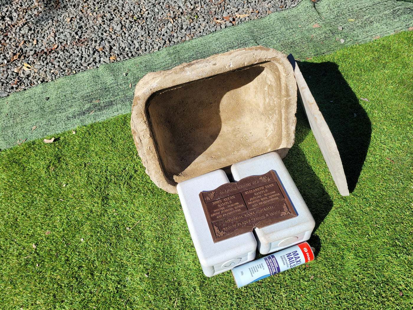 Proudly an original Australian product idea operating since 2009. Large Double Size Weight (approx. 24 kg) Memorial Rock/Stone/Urn with a sealable internal cavity for the safe-keeping of a loved one's ashes. Holds one or two standard Australian sized ash containers, plus memorabilia. Size Approx. 490mm x 410mm x 300mm (external). 320mm x 260mm ...