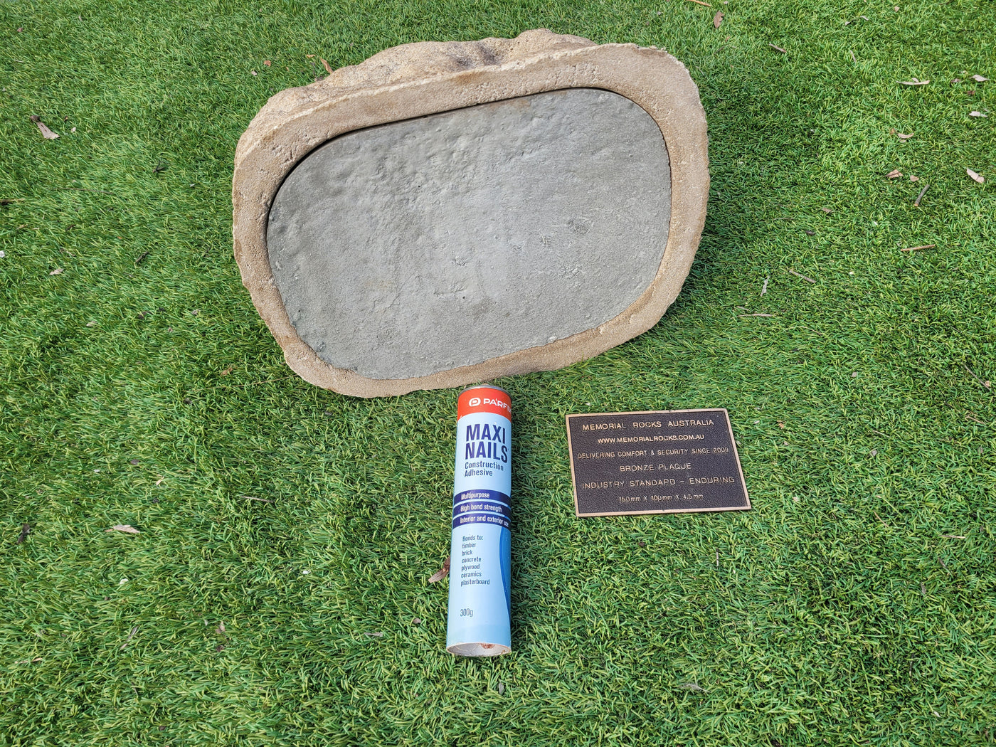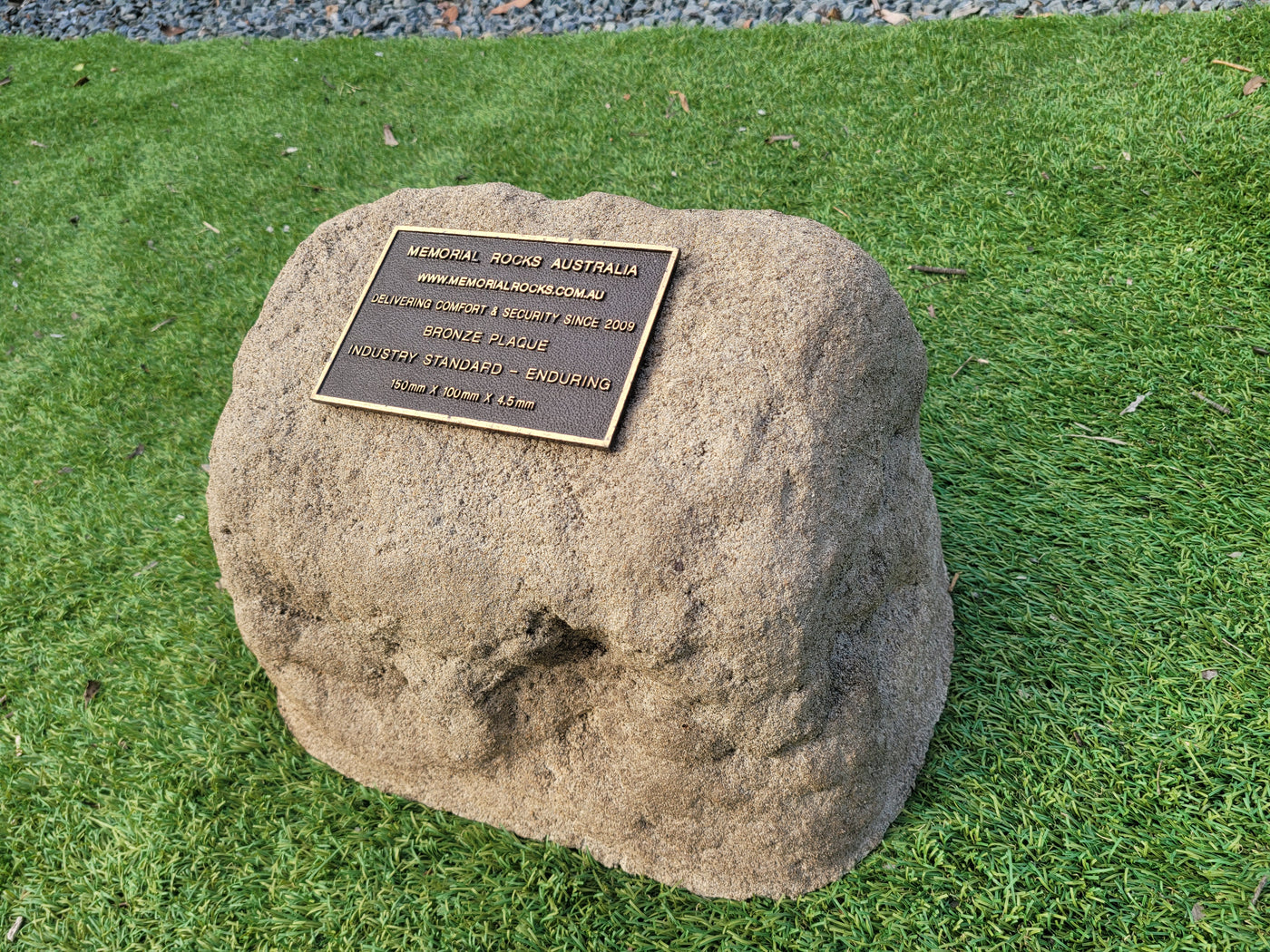 Memorial Rock Urns are a loving practical alternative for the safe keeping of a loved one's ashes. This Memorial rock has an incorporated flat space for up to a 180mm x 120mm x 4.5mm Plaque or our heart plaque. (200mm x 150mm) PLAQUE SOLD SEPARATELY The blue plastic standard Australian sized cremation urn seen in the pictures demonstrates the ...