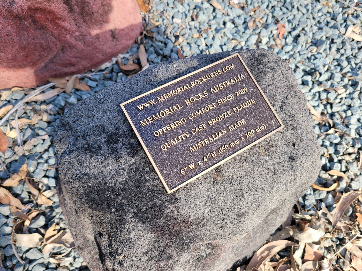 Memorial Rock Urns are a loving practical alternative for the safe keeping of a loved one's ashes. This Memorial rock has an incorporated flat space for up to a 180mm x 120mm x 4.5mm Plaque or our heart plaque. (200mm x 150mm) PLAQUE SOLD SEPARATELY The blue plastic standard Australian sized cremation urn seen in the pictures demonstrates the ...