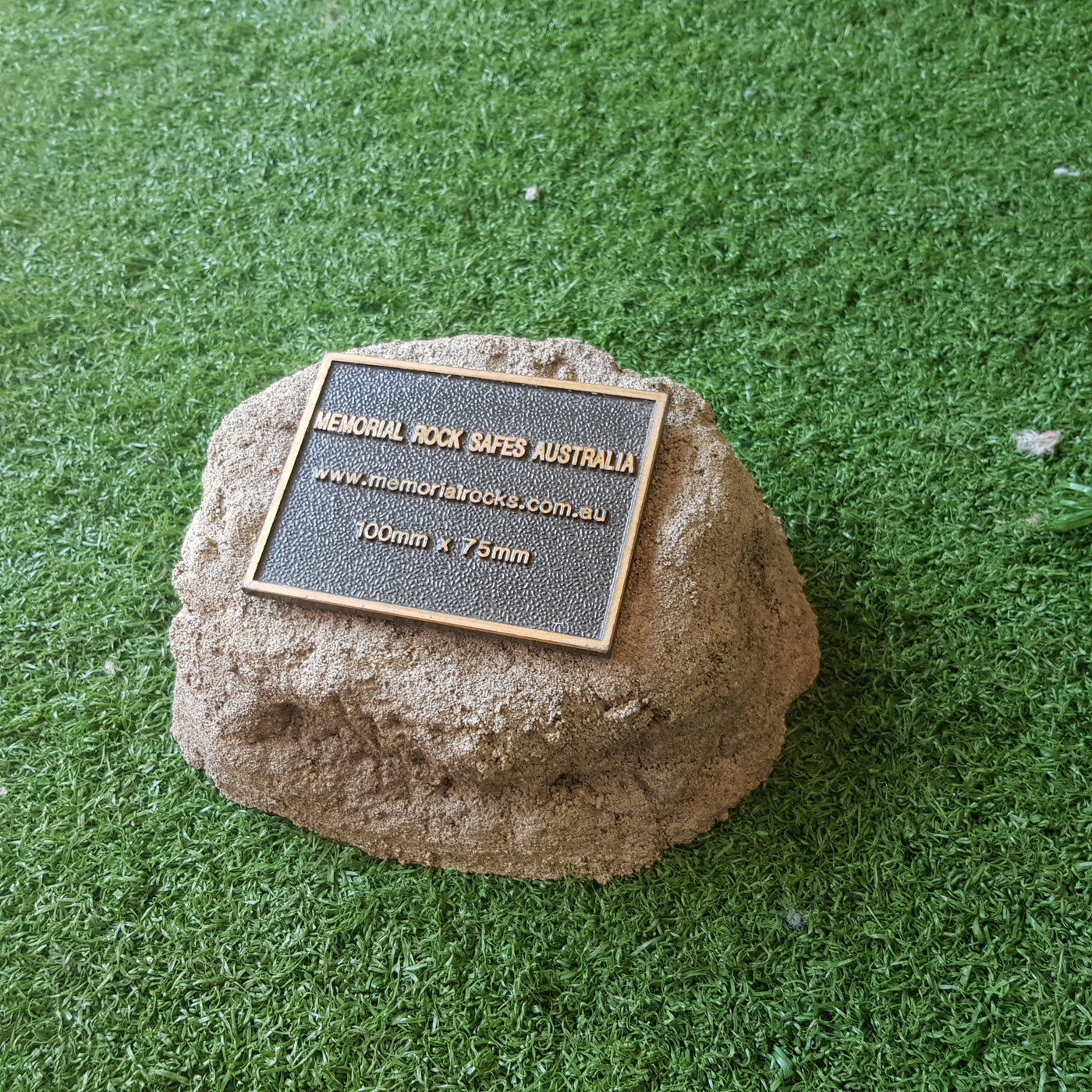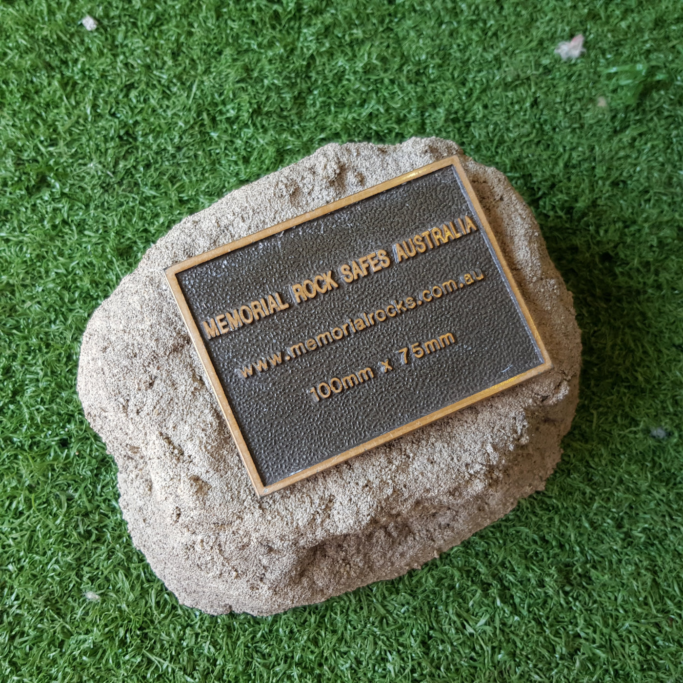 Memorial Rock Urns are a loving practical alternative for the safe keeping of a loved one's ashes. This Memorial Rock Urn has a small internal sealed container for partial ash interment. This Partial Ash Urn Memorial rock has an incorporated flat space for a industry standard bronze plaque 80 mm x 40mm x4.5mm or a 150mm x 100mm x 4.5 mm hear...