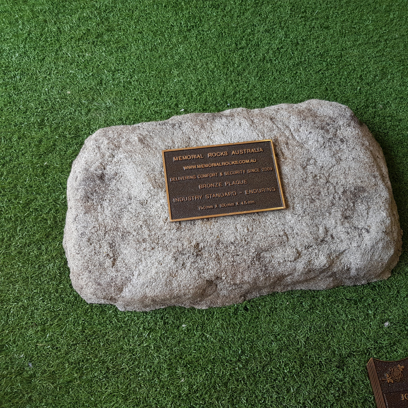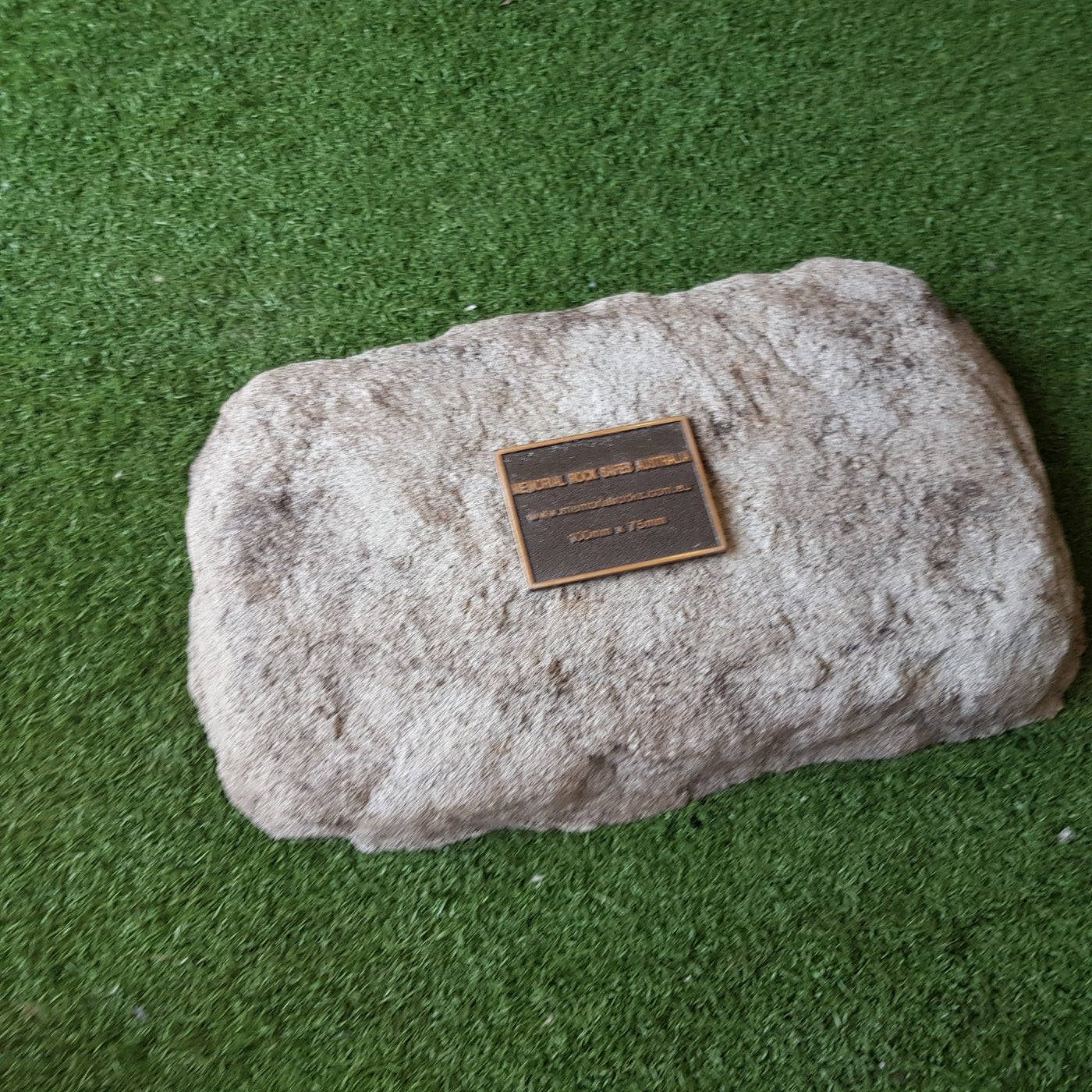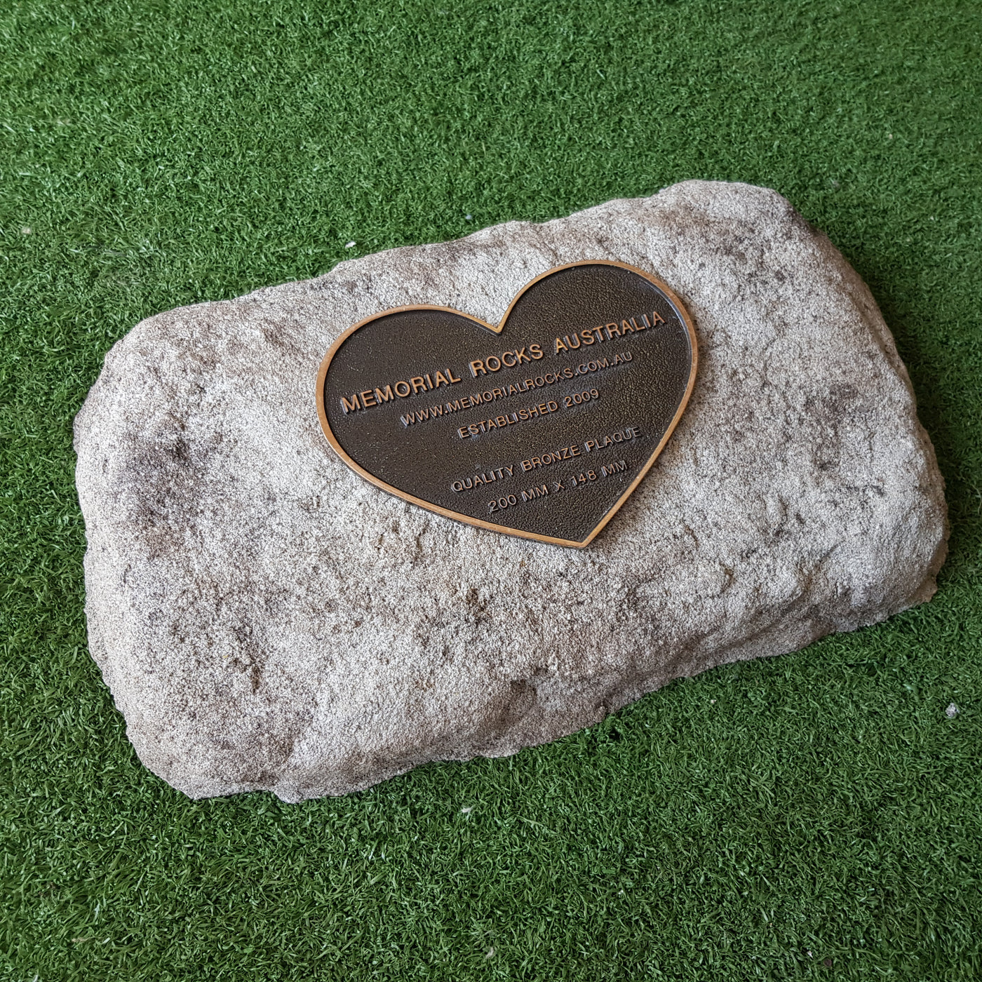 Memorial Rock Urns are a loving practical alternative for the safe keeping of a loved one's ashes. This Memorial Rock Urn has a small internal sealed container for partial ash interment. This Partial Ash Urn Memorial rock has an incorporated flat space for a industry standard bronze plaque 80 mm x 40mm x4.5mm or a 150mm x 100mm x 4.5 mm hear...