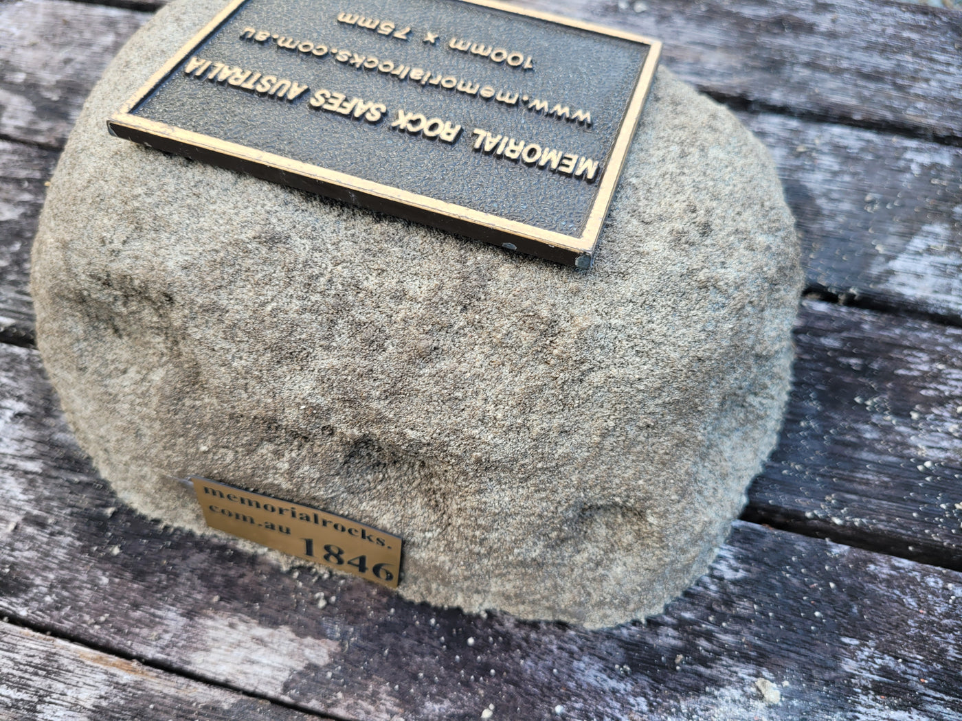 Memorial Rock Urns are a loving practical alternative for the safe keeping of a loved one's ashes. This Memorial Rock Urn has a small internal sealed container for partial ash interment. This Partial Ash Urn Memorial rock has an incorporated flat space for a industry standard bronze plaque 80 mm x 40mm x4.5mm or a 150mm x 100mm x 4.5 mm hear...