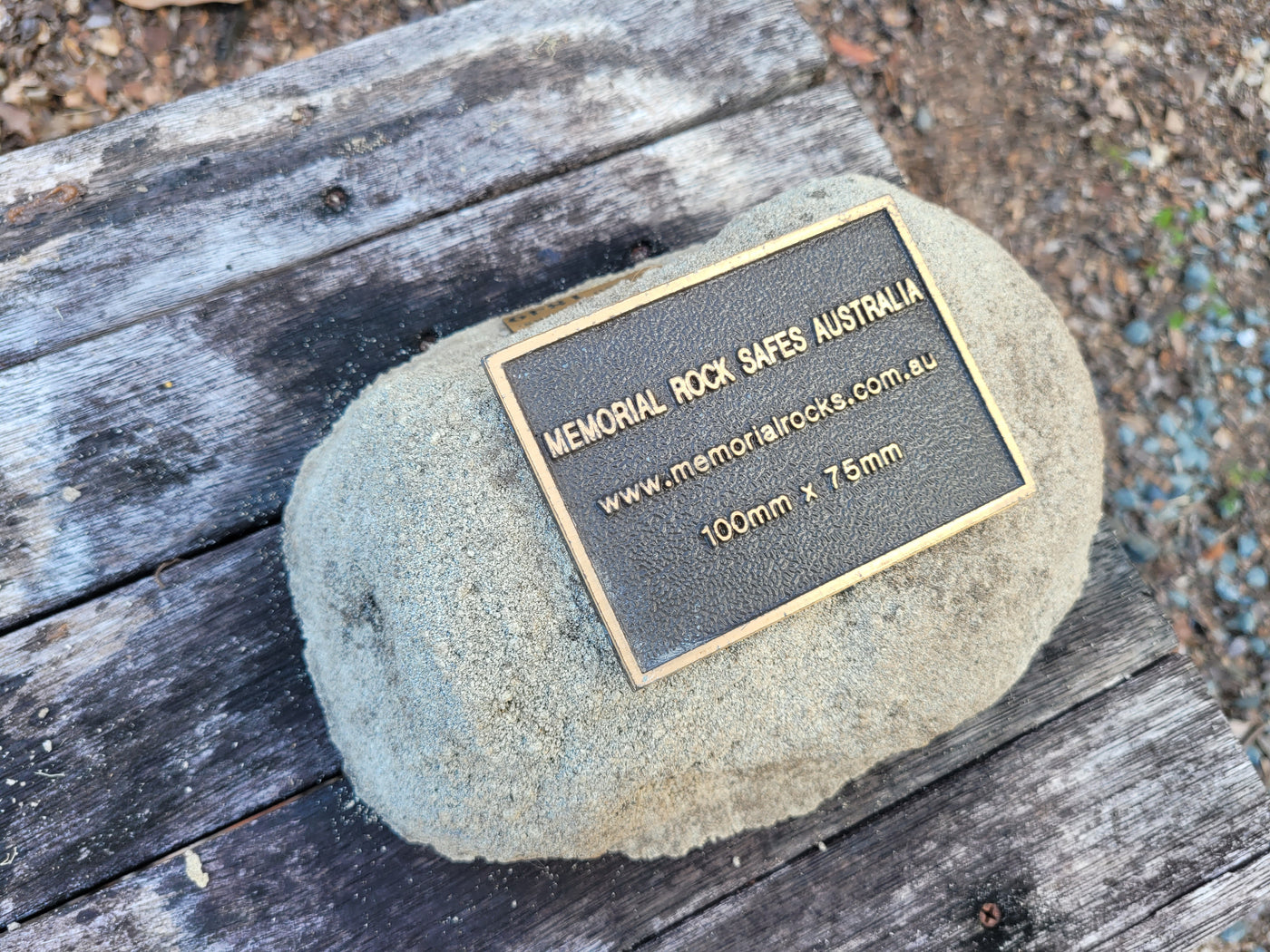 Memorial Rock Urns are a loving practical alternative for the safe keeping of a loved one's ashes. This Memorial Rock Urn has a small internal sealed container for partial ash interment. This Partial Ash Urn Memorial rock has an incorporated flat space for a industry standard bronze plaque 80 mm x 40mm x4.5mm or a 150mm x 100mm x 4.5 mm hear...