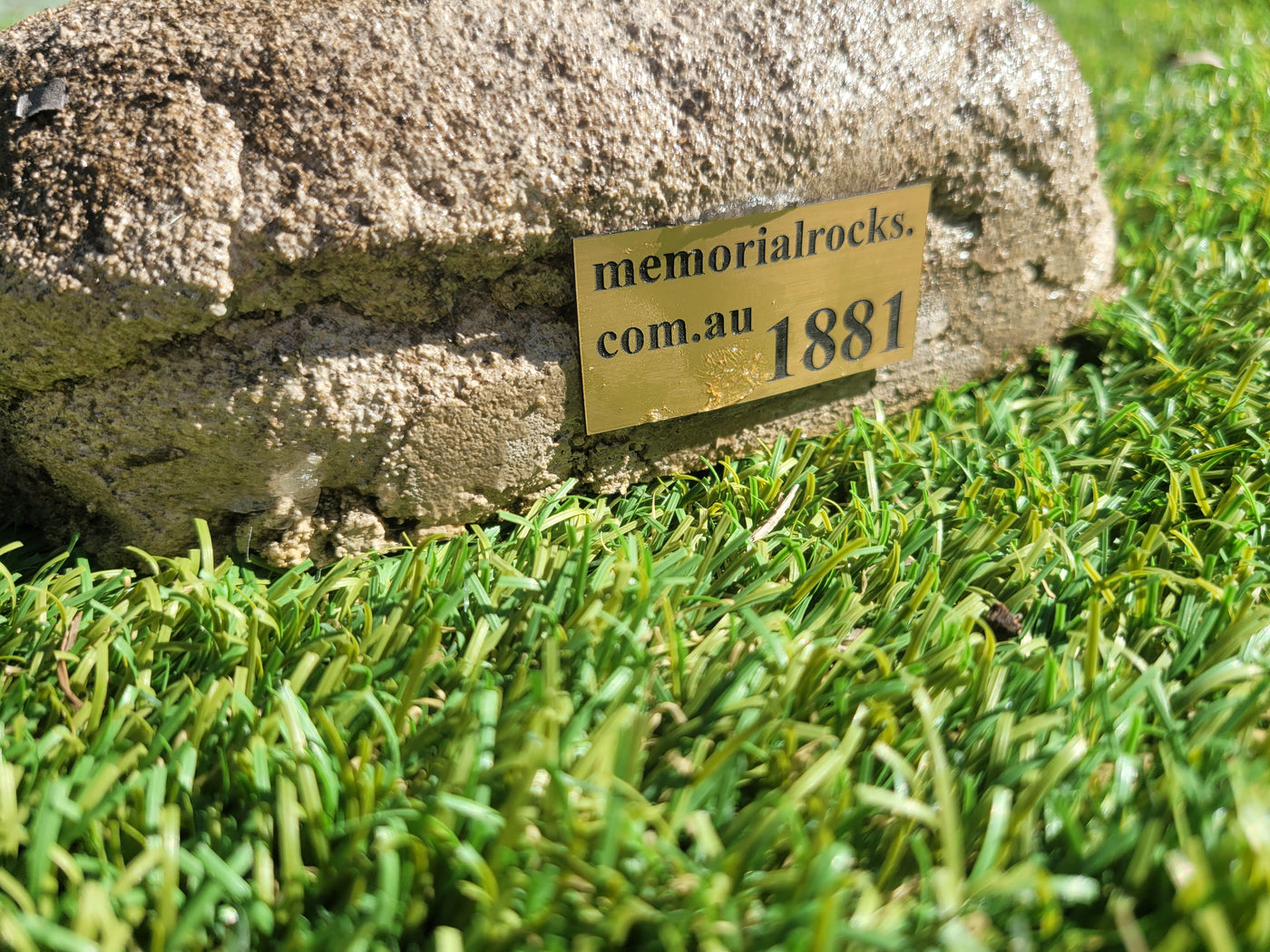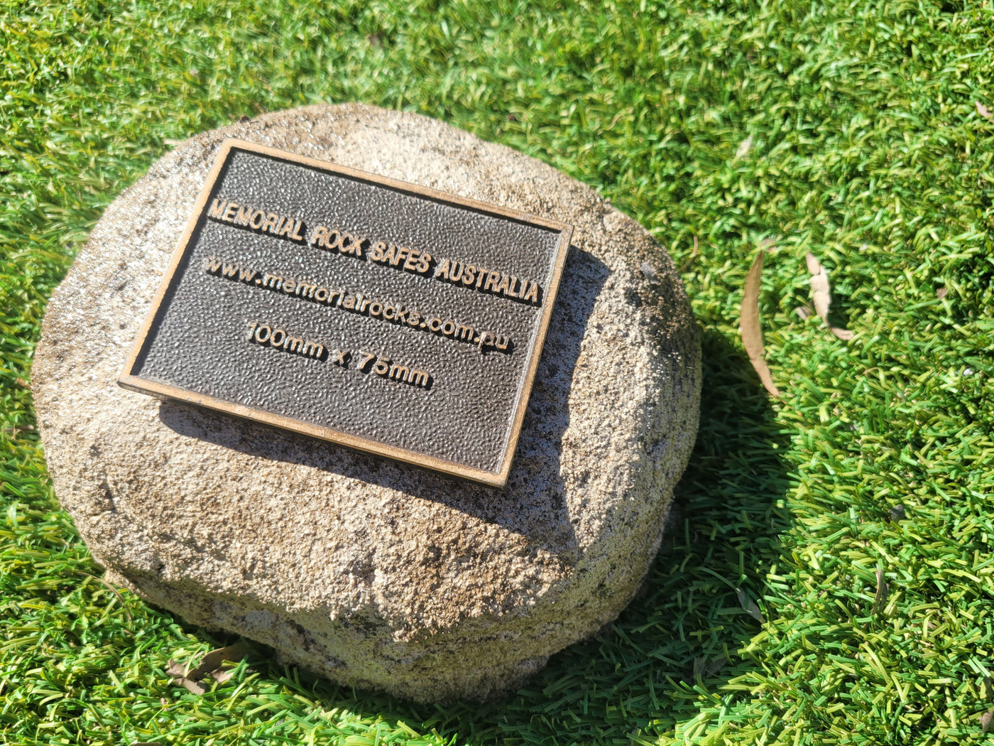 A high quality bronze plaque of your choice can also be purchased and can affixed prior to shipping if you wish.  A 100mm x 70mm x 4.5 mm Plaque is a recommended  size plaque for this small sized Partial Ash - Memorial Rock Urn.