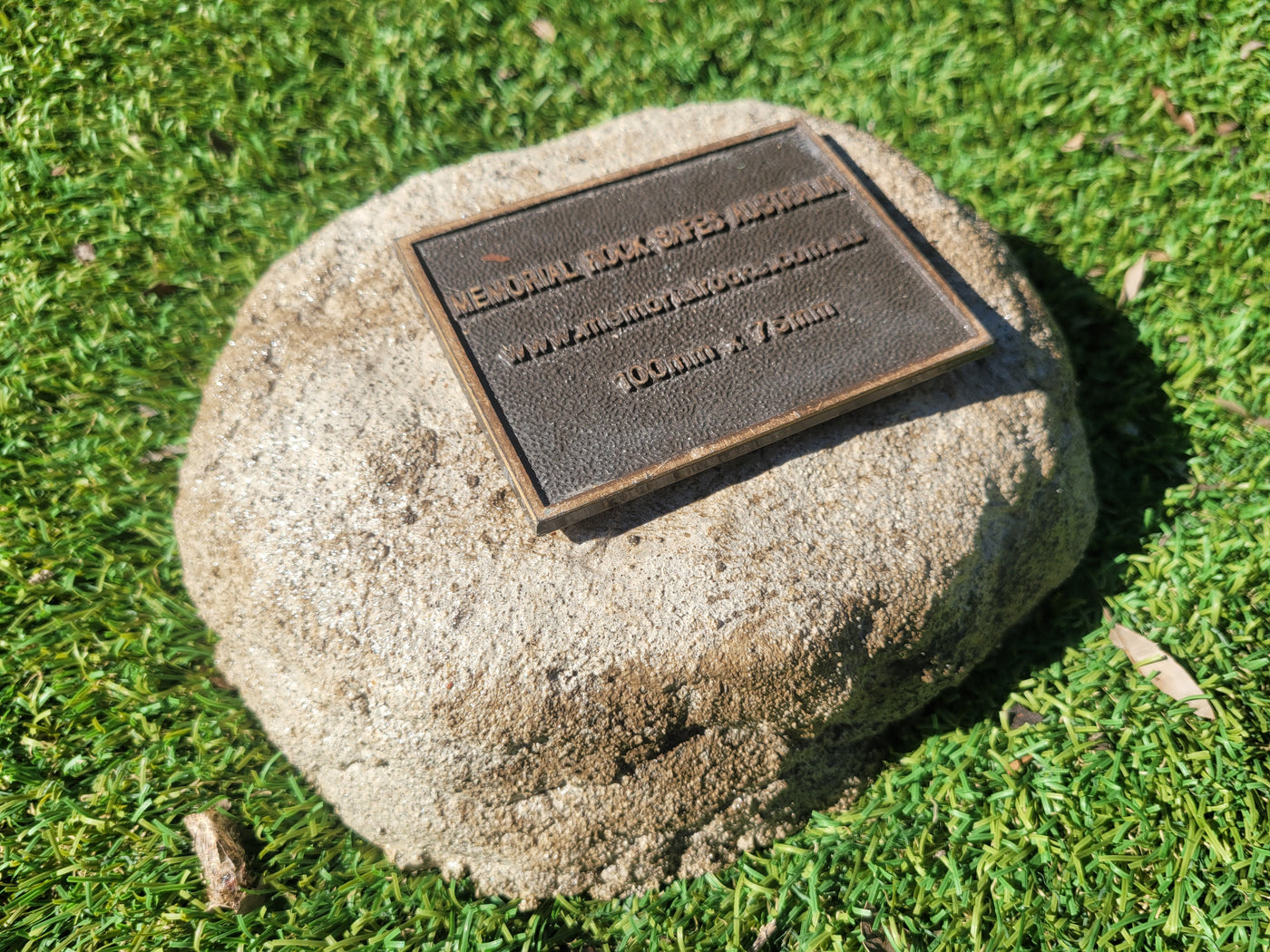 Memorial Rock Urns are a loving practical alternative for the safe keeping of a loved one's ashes. This Memorial Rock Urn has a small internal sealed container for partial ash interment. This Partial Ash Urn Memorial rock has an incorporated flat space for a 100 mm x 75mm x4.5mm industry standard bronze plaque. Proudly Australian made, origin...