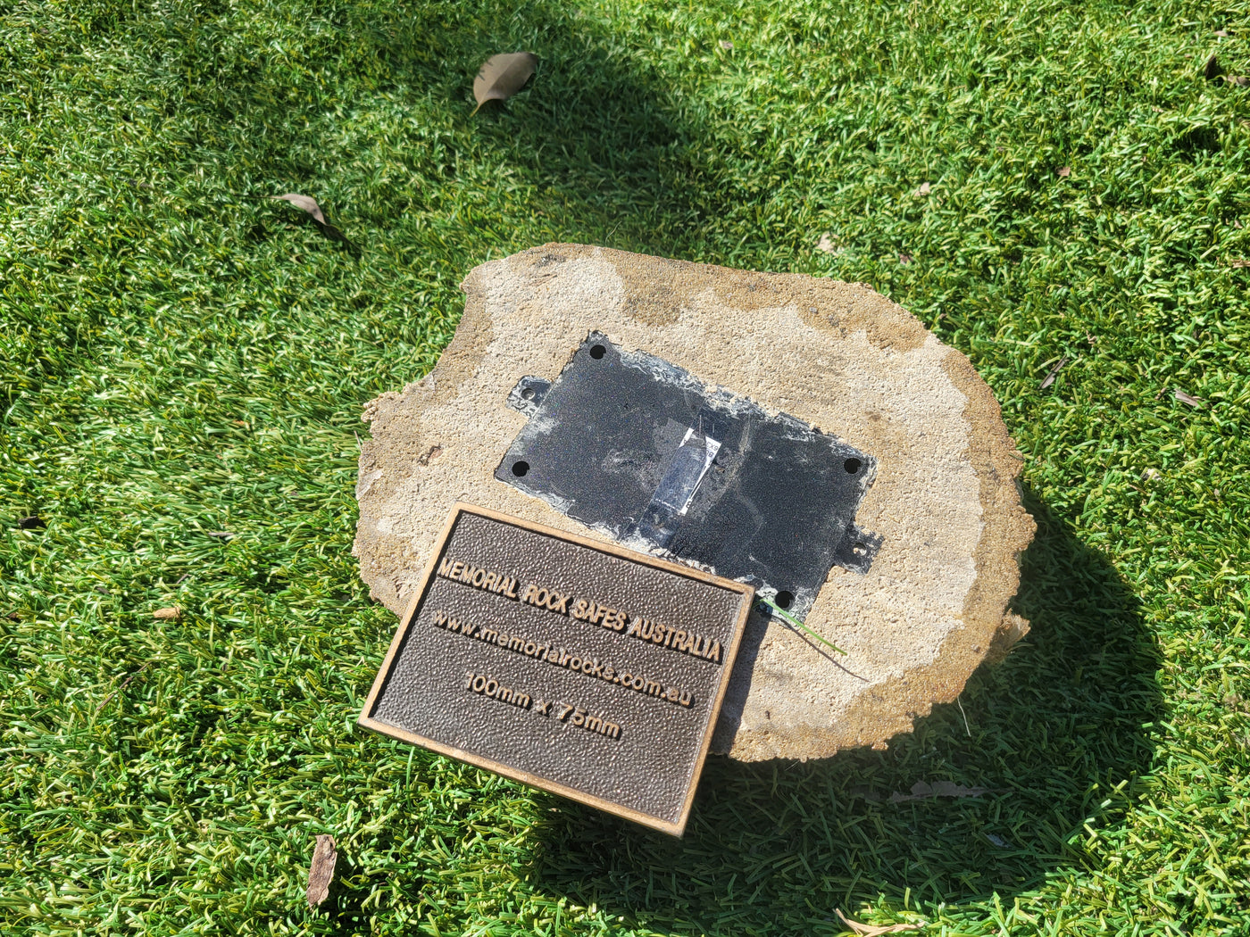 Memorial Rock Urns are a loving practical alternative for the safe keeping of a loved one's ashes. This Memorial Rock Urn has a small internal sealed container for partial ash interment. This Partial Ash Urn Memorial rock has an incorporated flat space for a industry standard bronze plaque 80 mm x 40mm x4.5mm or a 150mm x 100mm x 4.5 mm hear...