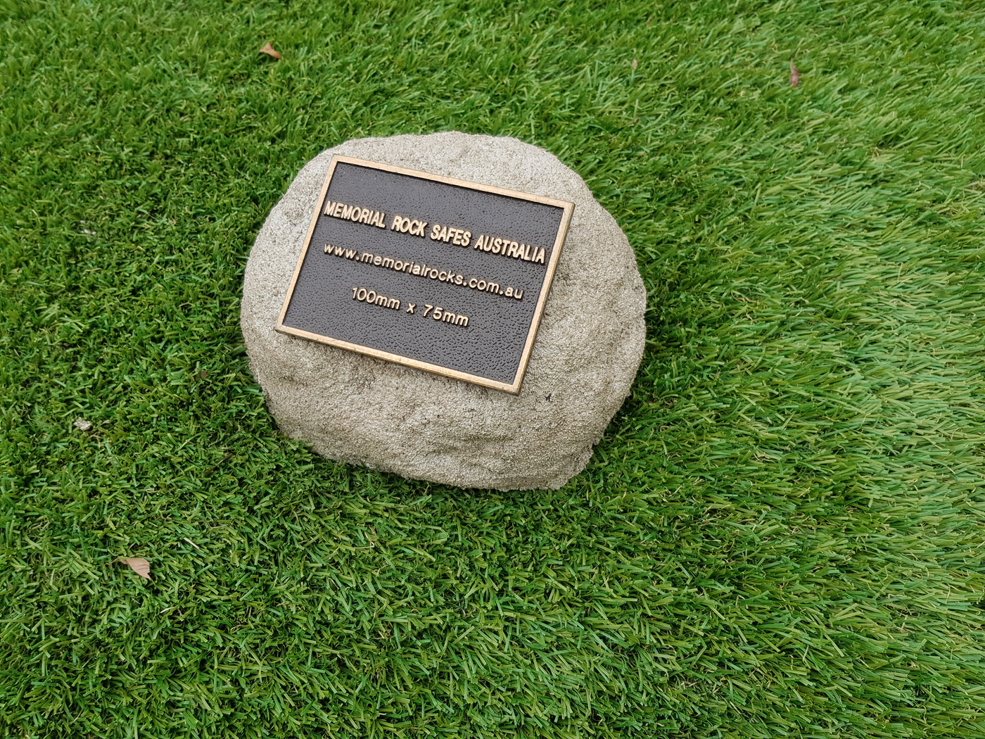 Memorial Rock Urns are a loving practical alternative for the safe keeping of a loved one's ashes. This Memorial Rock Urn has a small internal sealed container for partial ash interment. This Partial Ash Urn Memorial rock has an incorporated flat space for a industry standard bronze plaque 80 mm x 40mm x4.5mm or a 150mm x 100mm x 4.5 mm hear...