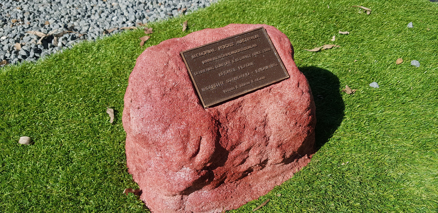 Memorial Rock Urns are a loving practical alternative for the safe keeping of a loved one's ashes. This Memorial rock has an incorporated flat indented recess space for a 150mm x 100mm x4.5mm industry standard bronze plaque. PLAQUE SOLD SEPARATELY Proudly an Australian made, original product. Operating since 2009. Regular size. Lightweight (a...