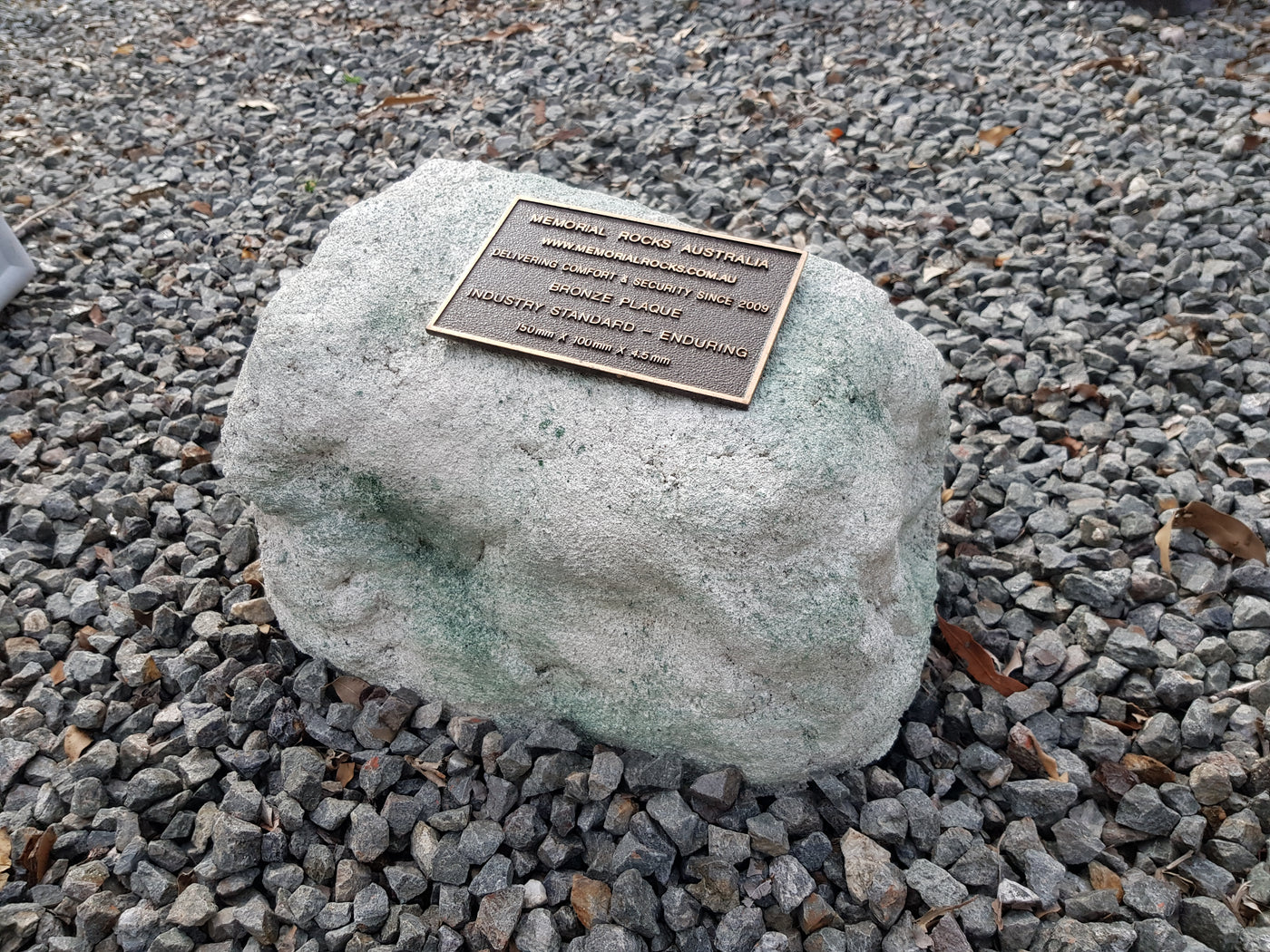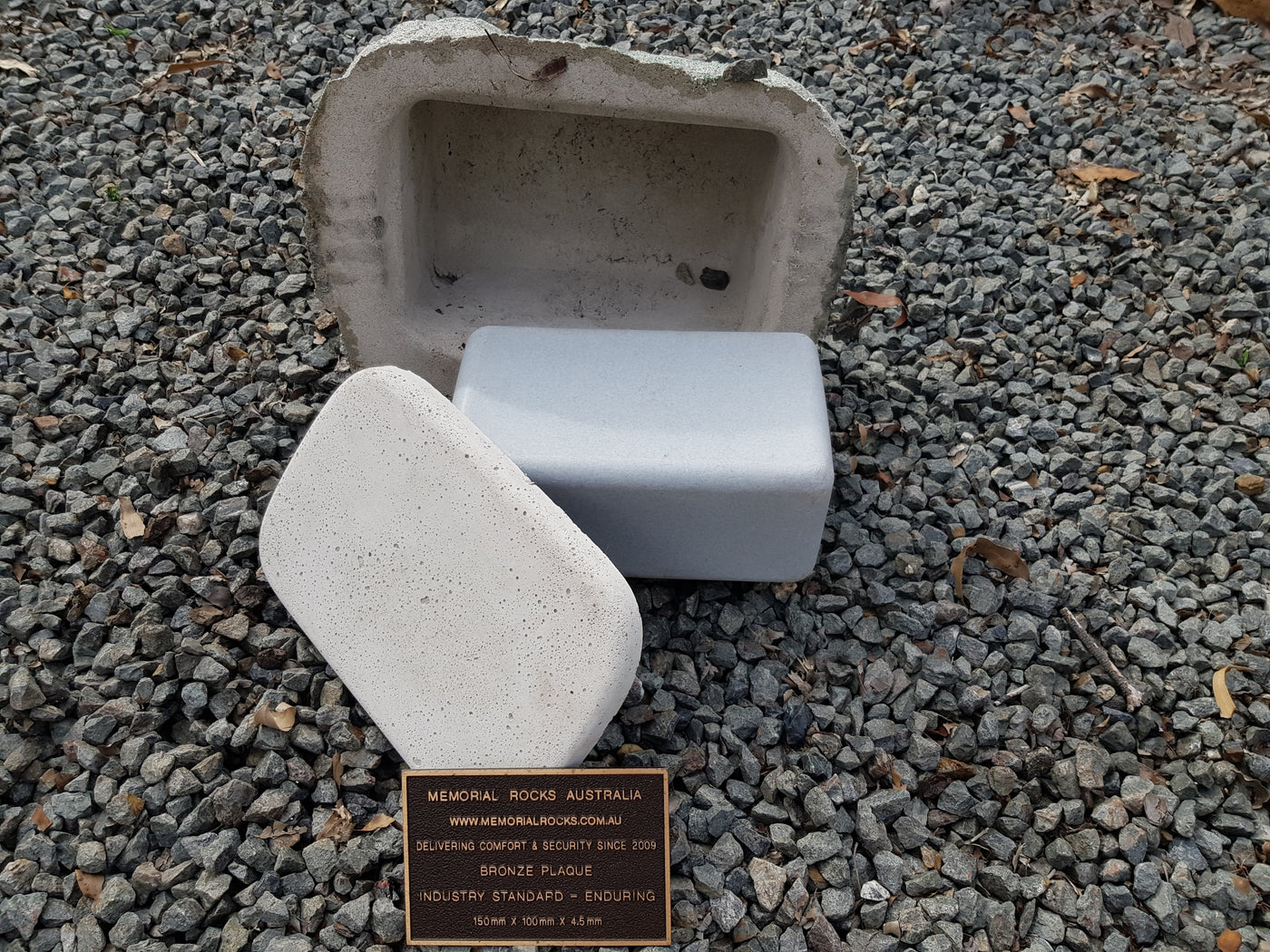Memorial Rock Urns are a loving practical alternative for the safe keeping of a loved one's ashes. This Memorial rock has an incorporated flat indented recess space for a 150mm x 100mm x4.5mm industry standard bronze plaque. PLAQUE SOLD SEPARATELY Proudly an Australian made, original product. Operating since 2009. Regular size. Lightweight (a...