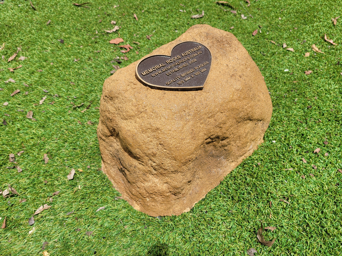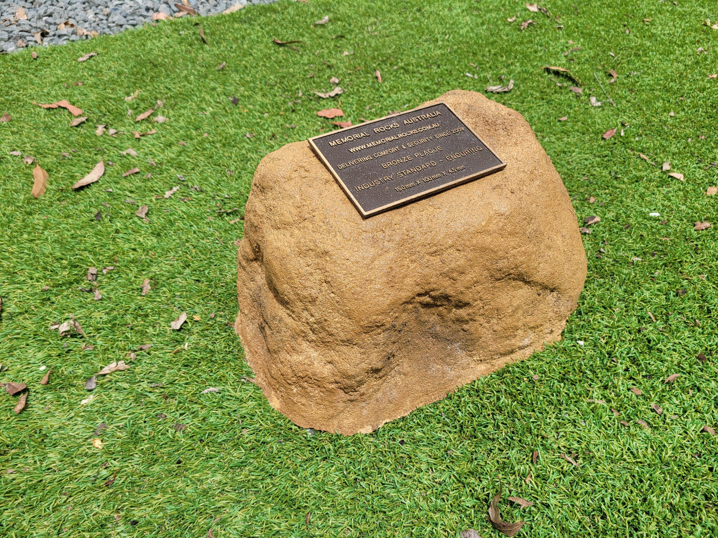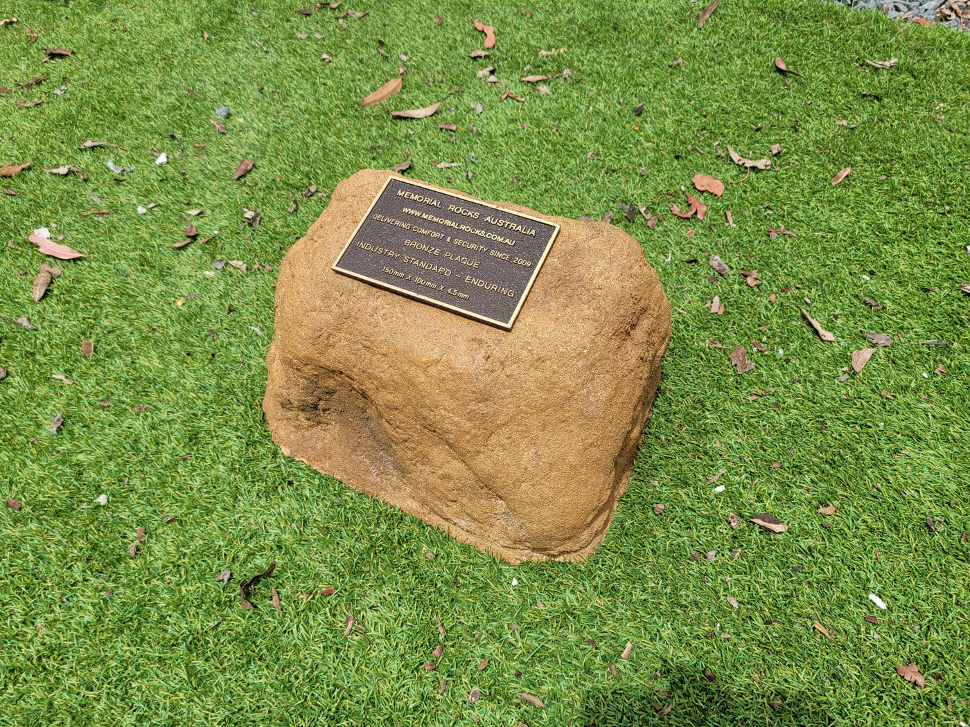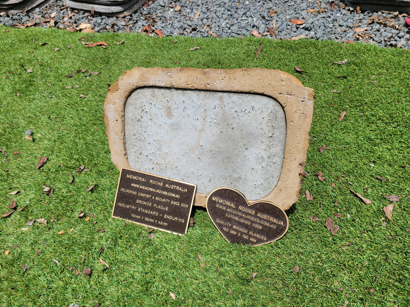 Memorial Rock Urns are a loving practical alternative for the safe keeping of a loved one's ashes. This Memorial rock has an incorporated flat indented recess space for a 150mm x 100mm x4.5mm industry standard bronze plaque. PLAQUE SOLD SEPARATELY Proudly an Australian made, original product. Operating since 2009. Regular size. Lightweight (a...