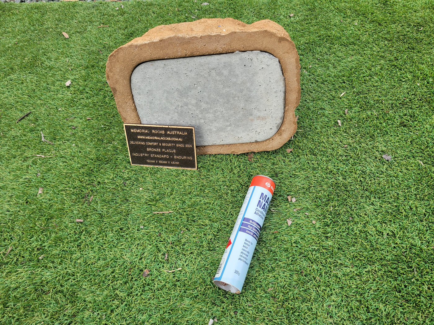 Memorial Rock Urns are a loving practical alternative for the safe keeping of a loved one's ashes. This Memorial rock has an incorporated flat indented recess space for a 150mm x 100mm x4.5mm industry standard bronze plaque. PLAQUE SOLD SEPARATELY Proudly an Australian made, original product. Operating since 2009. Regular size. Lightweight (a...