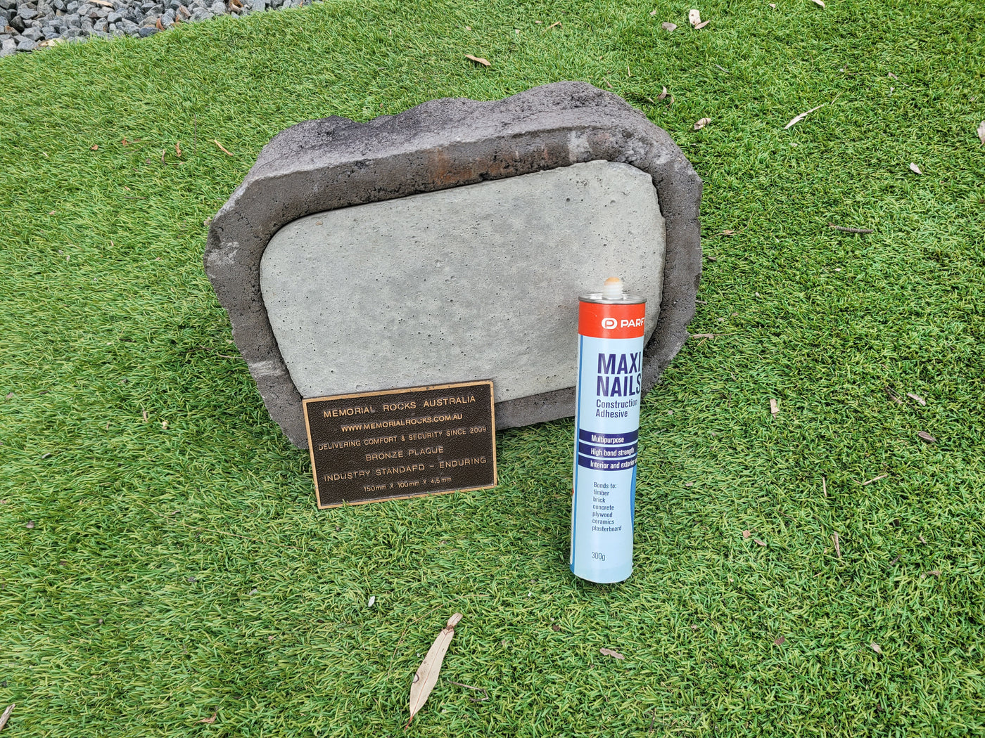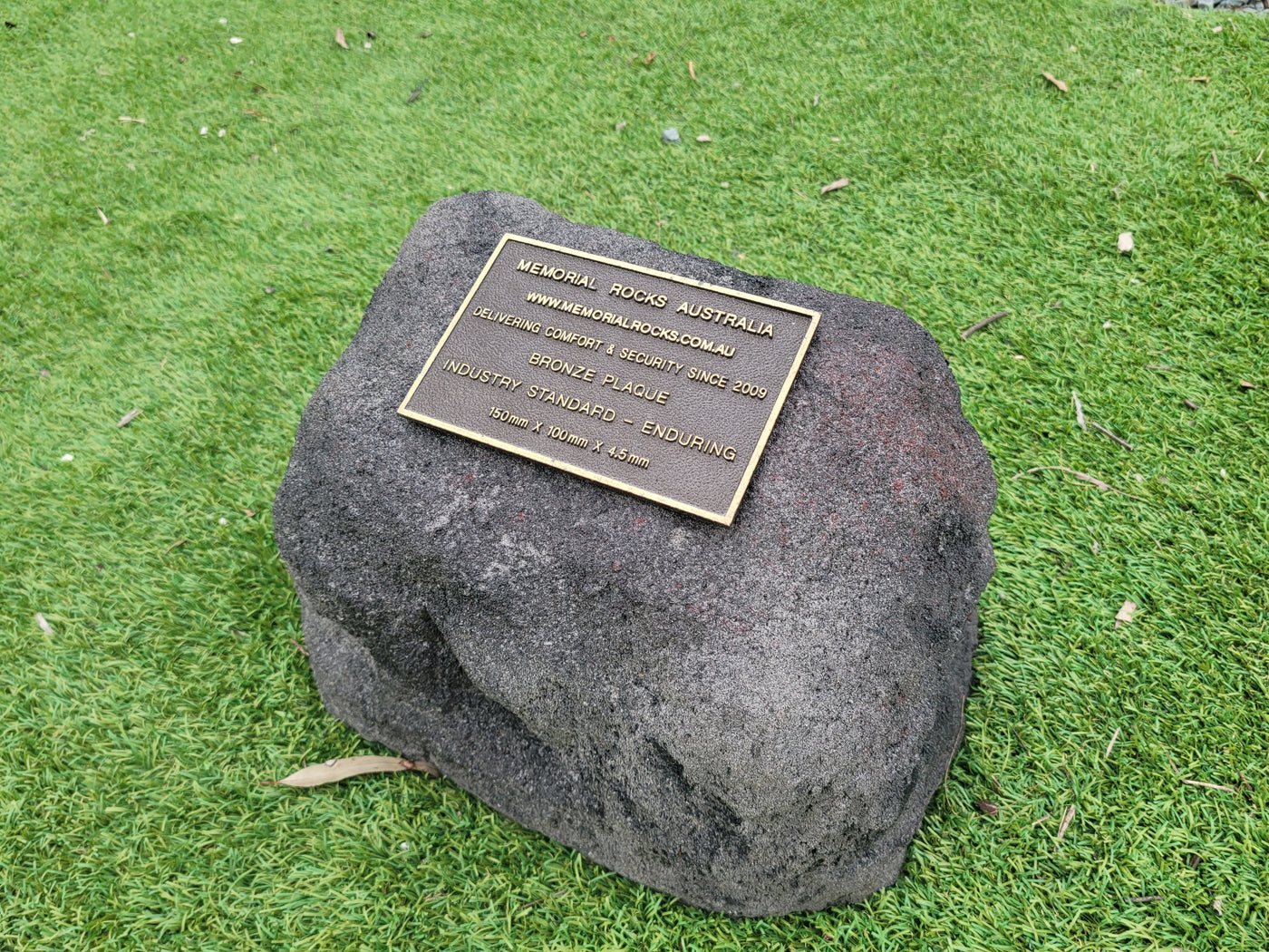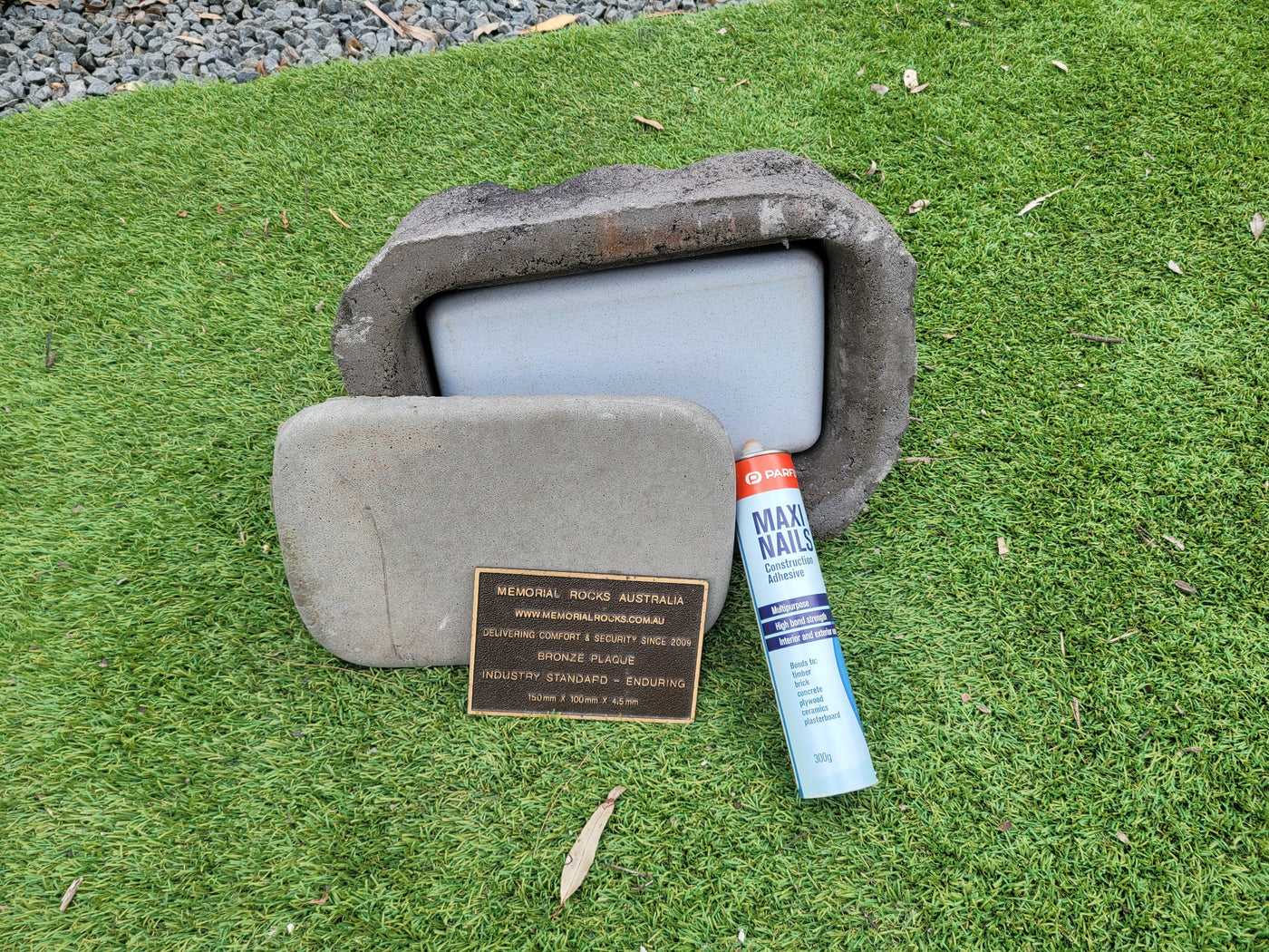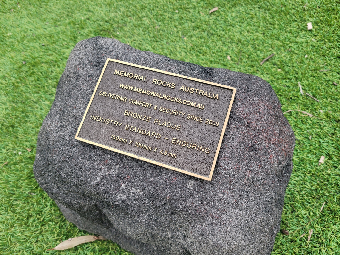 Memorial Rock Urns are a loving practical alternative for the safe keeping of a loved one's ashes. This Memorial rock has an incorporated flat indented recess space for a 150mm x 100mm x4.5mm industry standard bronze plaque. PLAQUE SOLD SEPARATELY Proudly an Australian made, original product. Operating since 2009. Regular size. Lightweight (a...